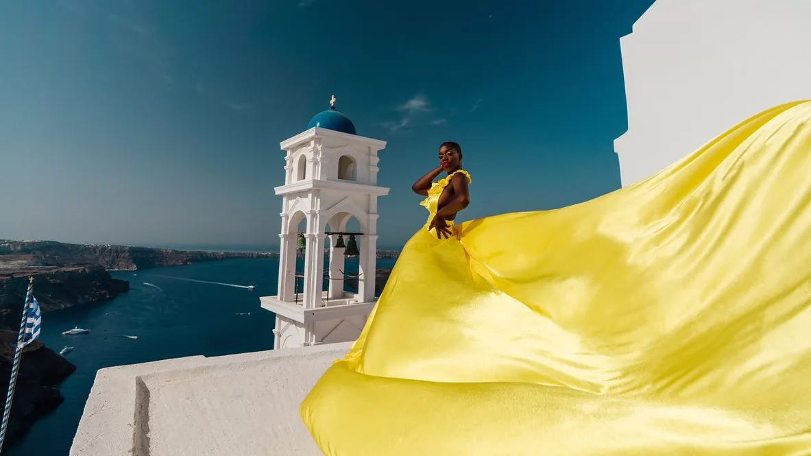I want a Greece wardrobe. I need a Greece wardrobe. I’ve dreamt for years about piles of white dreamy pieces that flutter in the wind, gauzy dresses, perfectly curated resort wear that somehow transforms me into part of the Greek landscape, the caldera just over my shoulder as the sun goes down. In my head, I’m a vision. I get mistaken for a local obviously. In reality, this requires an enormous overweight checked bag and when I look at our scheduled itinerary, I just don’t know that I have it in me. My suitcase already feels heavy and it’s not even packed yet.